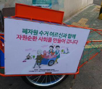 환경부는 폐지 등을 주워 생계를 이어가는 노인들의 경제적 어려움을 해소하기 위한 사업의 일환으로 한국순환자원유통지원센터, 사단법인 ‘끌림’과 함께 노인들의 리어카에 기업·지역 소상공인의 광고를 유치해 수익금을 지원하는 사업을 벌인다고 28일 밝혔다. 환경부는 폐지를 포함한 재활용자원을 수거하는 것은 재활용산업의 뿌리가 되는 활동임에도, 그동안 제도적인 지원체계가 부족해 노인들이 낮은 소득과 열악한 작업환경으로 어려움을 겪어왔다고 설명했다.