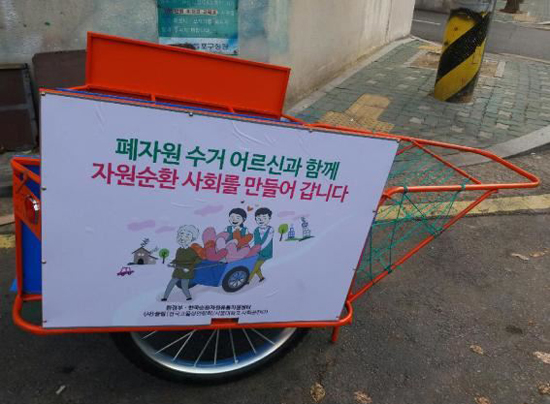 환경부는 지난해 말부터 측면광고가 가능한 리어카 50대를 서울 일대에서 폐지 줍는 노인들에게 전달했다.